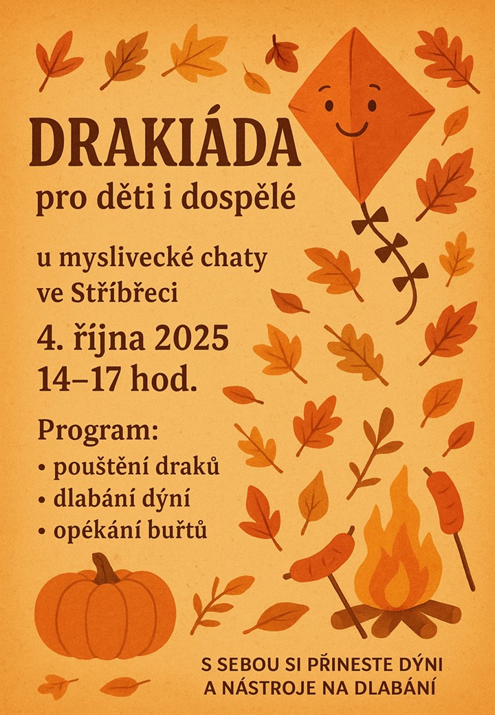 DRAKIÁDA pro děti a dospělé: sobota 4. října 2025 14-17 hod. - myslivecká bouda ve Stříbřeci