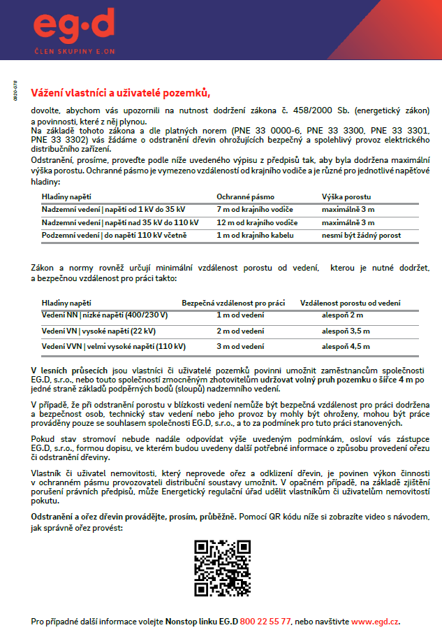 EG.D: Upozornění pro vlastníky a uživatele pozemků