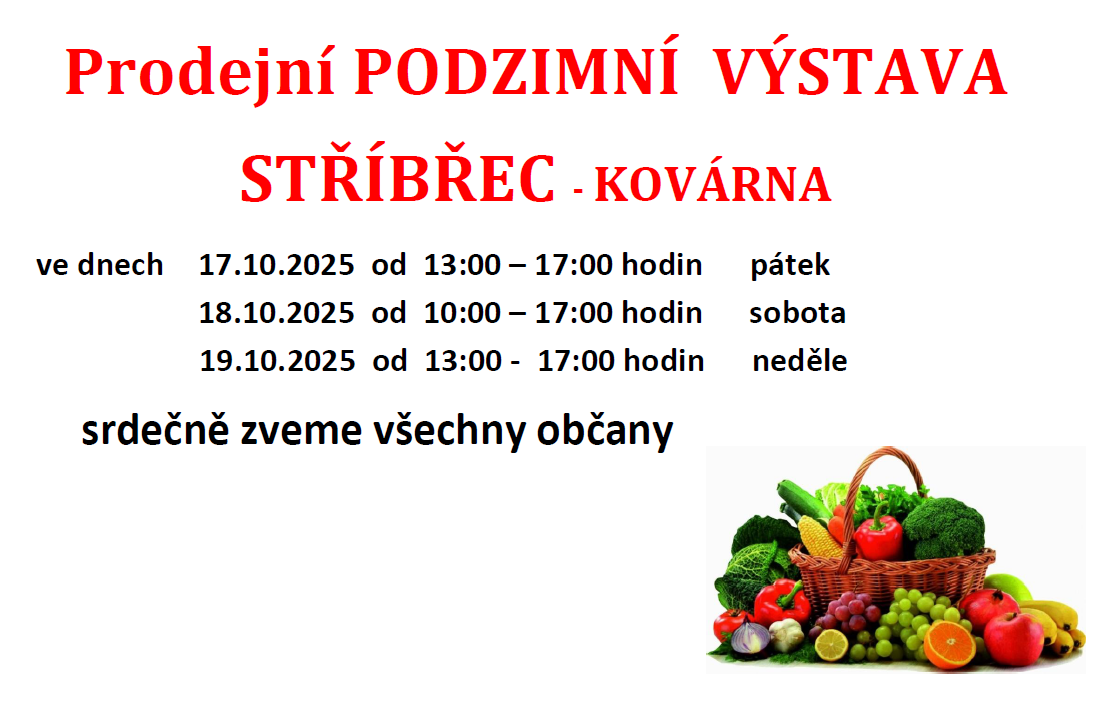 PRODEJNÍ PODZIMNÍ VÝSTAVA - Zahrádkáři Stříbřec 17, 18, 19.10.2025, Kovárna Stříbřec